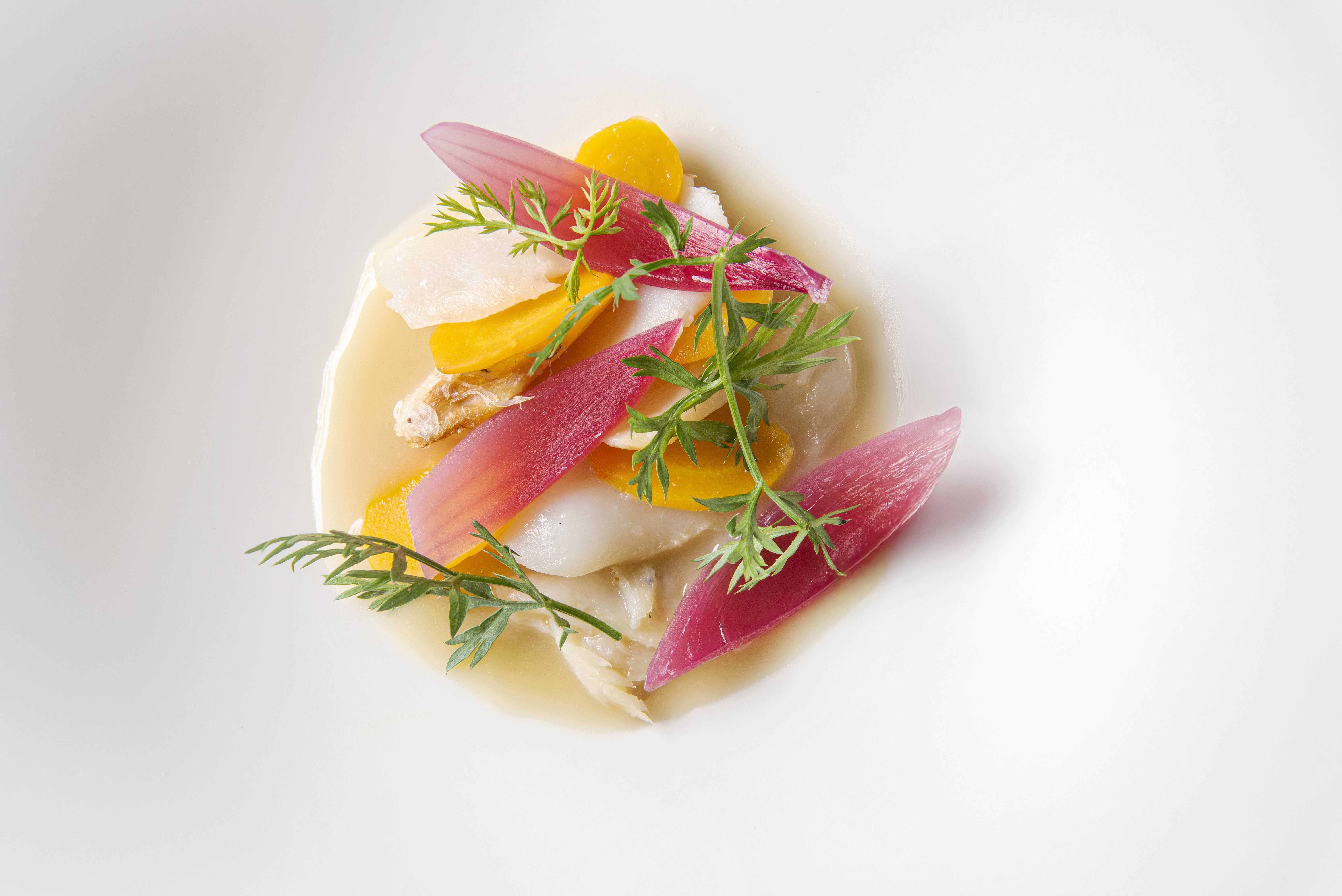 Con questo piatto, lo chef racconta un viaggio tra storia e innovazione, tra Nord e Sud Europa, in un dialogo gastronomico che celebra l’incontro tra la cucina norvegese e quella italiana.