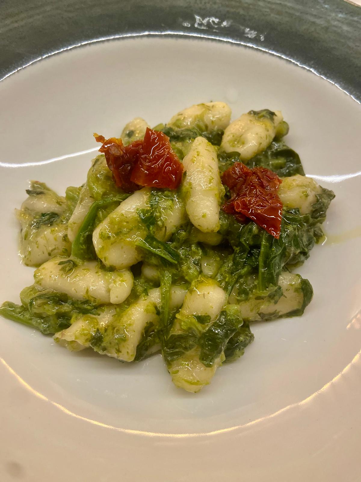 Il percorso è proseguito con un primo piatto che ho trovato estremamente rappresentativo della cucina italiana del Sud: cavatelli lavorati a mano con cime di rapa e alici di Menaica. Un piatto semplice solo in apparenza, ma profondamente identitario.