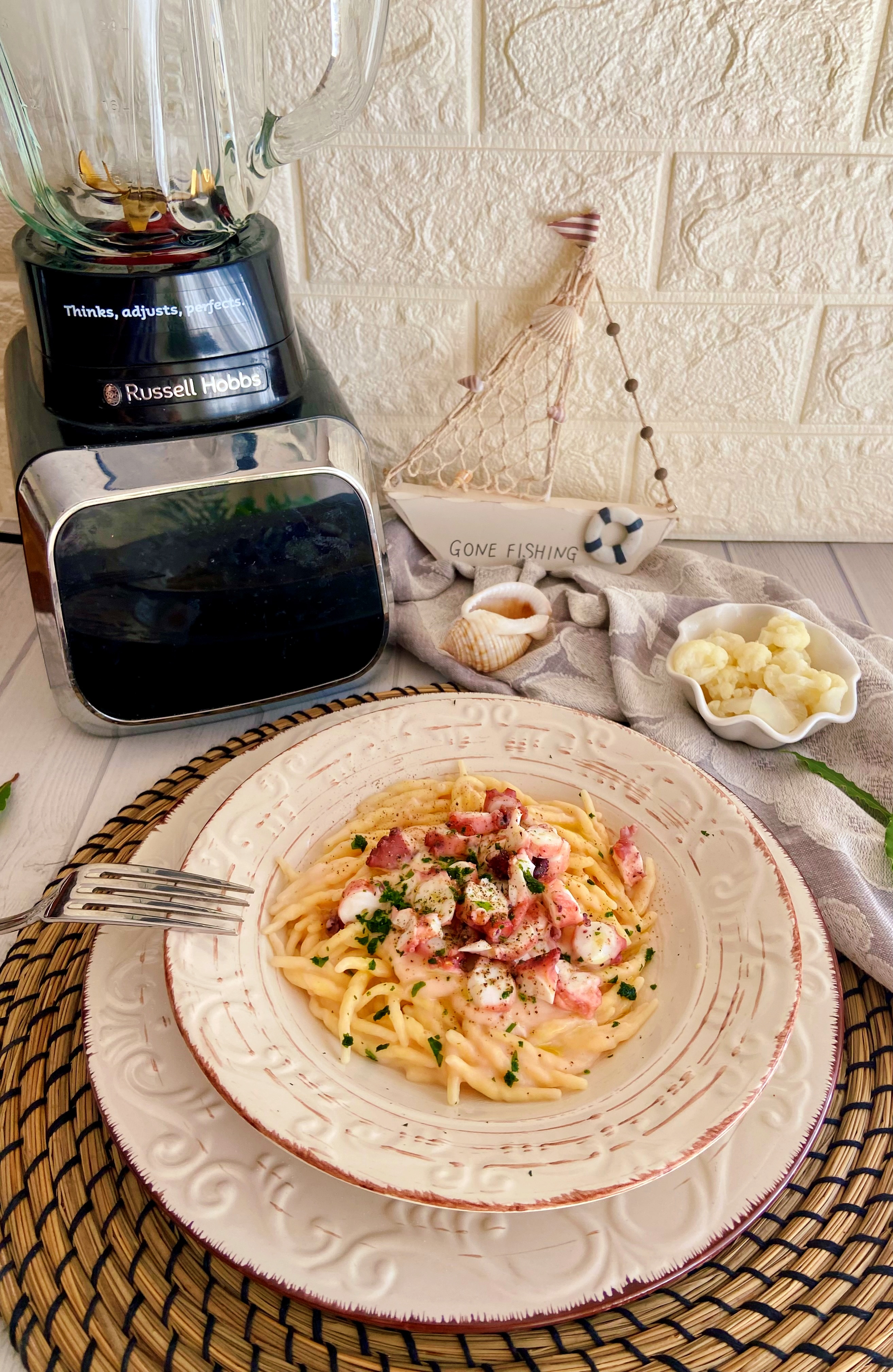 Per ottenere una base al cavolfiore perfetta mi sono avvalsa di Sensigence Intelligent di Russell Hobbs, un blender intelligente che mi ha permesso di creare una crema vellutata.
