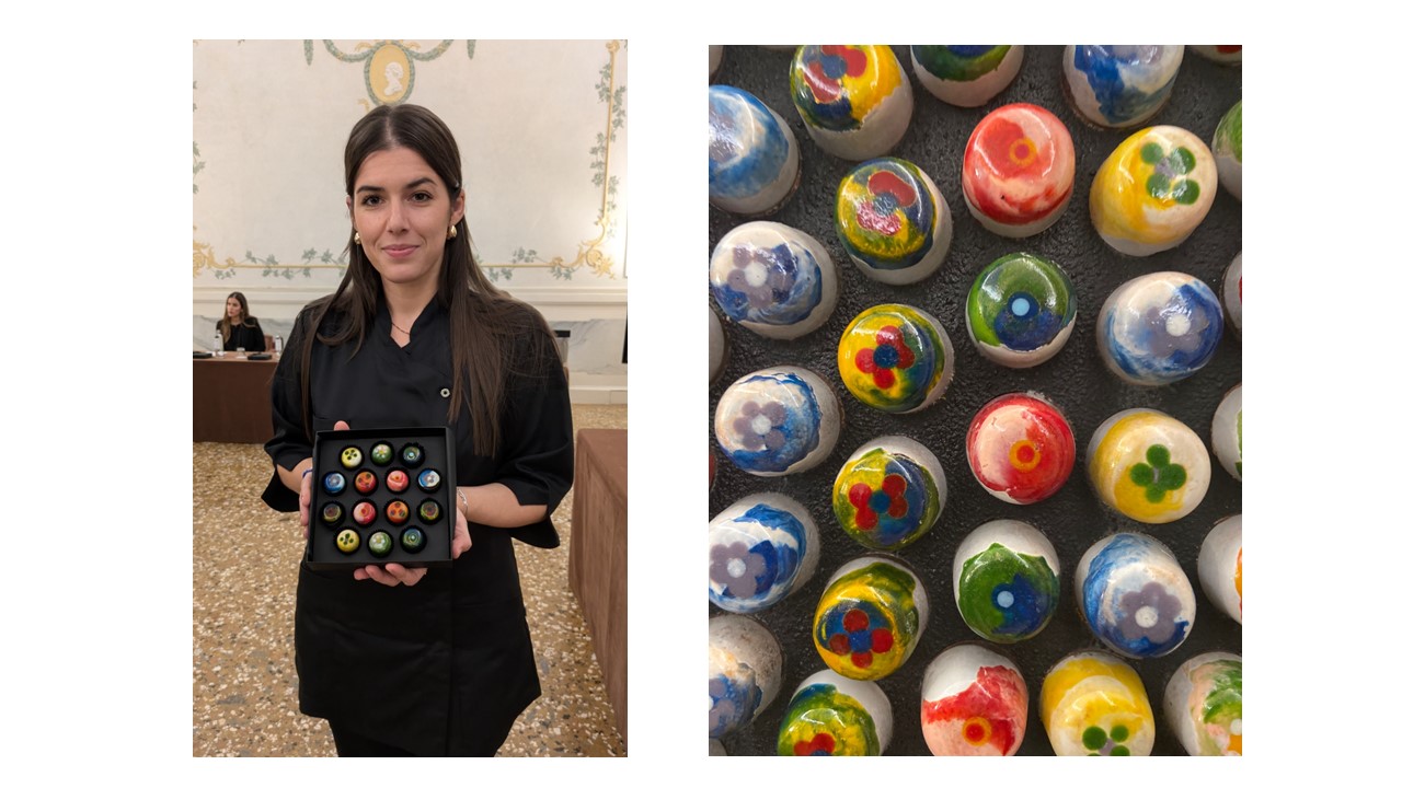 La sua creatività ha dato vita, nel 2020 (in pieno lockdown!) alla linea Murrine, le praline ispirate al vetro veneziano, simbolo perfetto dell’incontro tra estetica e gusto. Oggi, alla guida del laboratorio di pasticceria moderna e cioccolateria, non smette mai di sperimentare per dar vita a nuove creazioni.